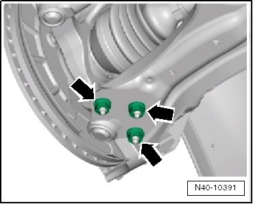 Vehicle must not be standing on its wheels when doing this, otherwise wheel bearing will be damaged.
