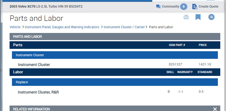 It sounds a little high to replace the cluster as it appears OEM price on the part is around $1,500.00 and a half hour of labor. Which means if their door rate is $100.00 per hour then that would be $50.00 in labor.