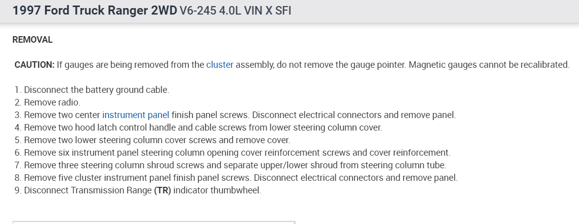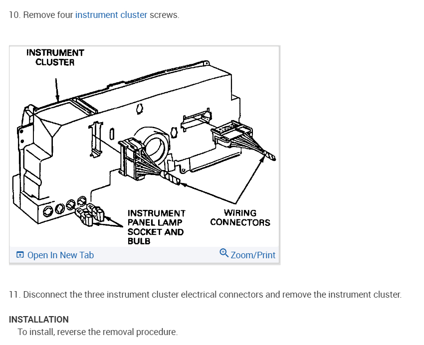 I recently purchased the vehicle listed above. The engine runs great with no leaks, but it has a few issues I need advice on. The first one is the instrument cluster. The only gauge that works properly is the gas gauge. The speedometer stays stuck on 30MPH while parked. While driving it moves according to speed but when parked it stays stuck on 30MPH. The tachometer while driving goes up to 3,000RPMs while driving about 50MPH (I've been judging my speed). The second thing is the outside turn signals work fine. When I turn the left turn signal on I hear a pretty loud buzzing noise coming from inside the cluster. Please help me out with this. It has a couple of other issues which I'll discuss after I can repair these first as they are more important.