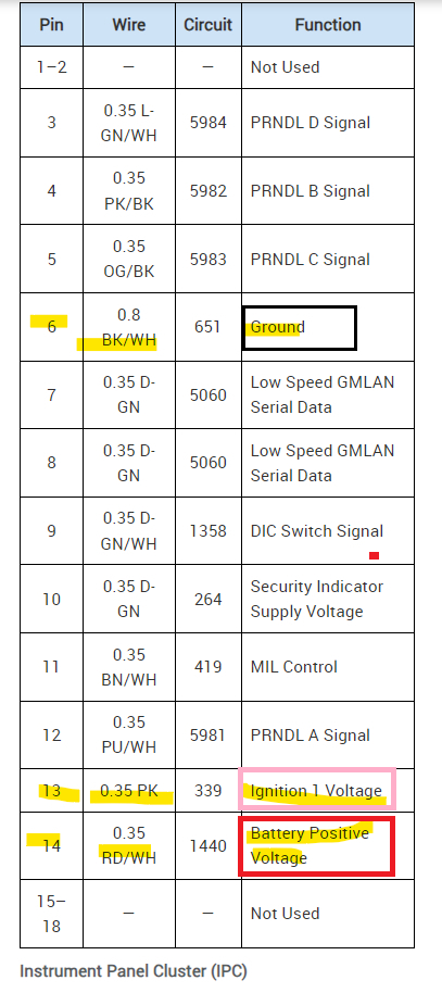 Since power comes from the BCM to power the Cluster, if either power feed is missing 12volts, then you go to the BCM and see if the power is missing there as well. But this is after checking the 12volts and ground at the Cluster.