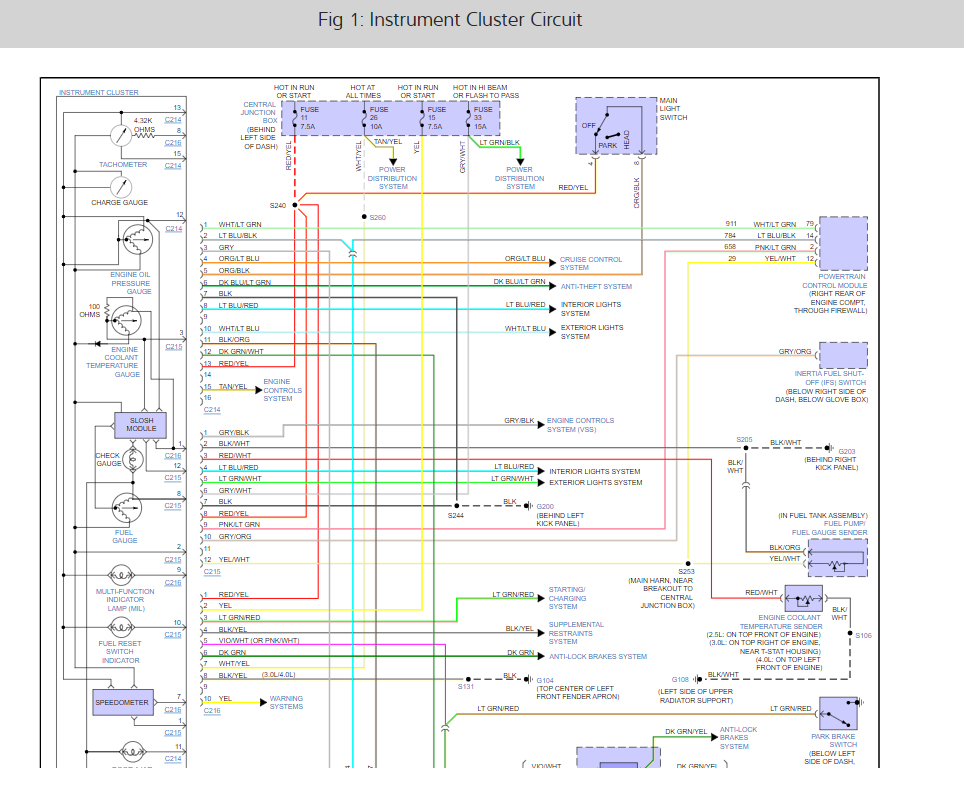 Let's begin by checking fuse # 11, #26, #15 and #33 in the fuse panel behind the left side of the dash. here is an instrument cluster wiring diagrams so you can see how the system works and the fuse locations in the images below. Please let us know what happens.