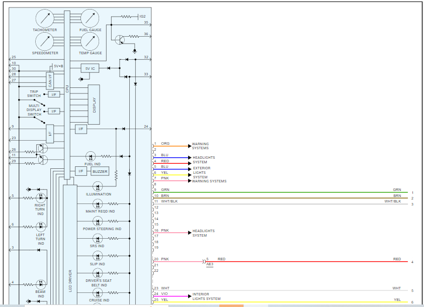 Hello, I have an instrument cluster for the car listed above. I would like to set it up on a test bench for research, but I cannot find information on the pins. I just want to power on the instrument cluster and connect to the CAN pins on it, but I cannot find out which ones are the power pins and which ones are the CAN network pins. Any help is appreciated.