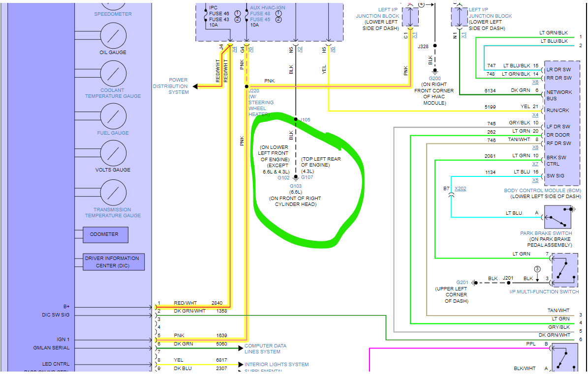 If any other components are not functioning, the cluster on these is on a Splice pack for the Serial Bus Data wire, the HVAC control module and part of the Body Control module seem to be close to it on the Data Bus. But if you have power there and that's why you're looking for your ground. Then you've probably already found the issue. I don't see any other grounds for the cluster. If I find any more information, I will post it.