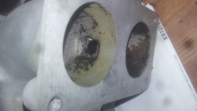 I took the intake manifold off and there is a hole between the two round holes and I am wondering if that is a blowout as it is rough and looks like it blew through.