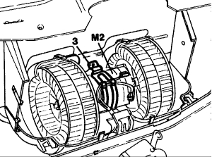 NOTE : The "Siemens/thermal" air conditioner unit has been installed since 01/88. As only the Behr blower motor is available for all air conditioner units in the replacement parts market, the motor bracket also has to be exchanged when replacing the blower motor on the Siemens/thermal air conditioner unit boxes.