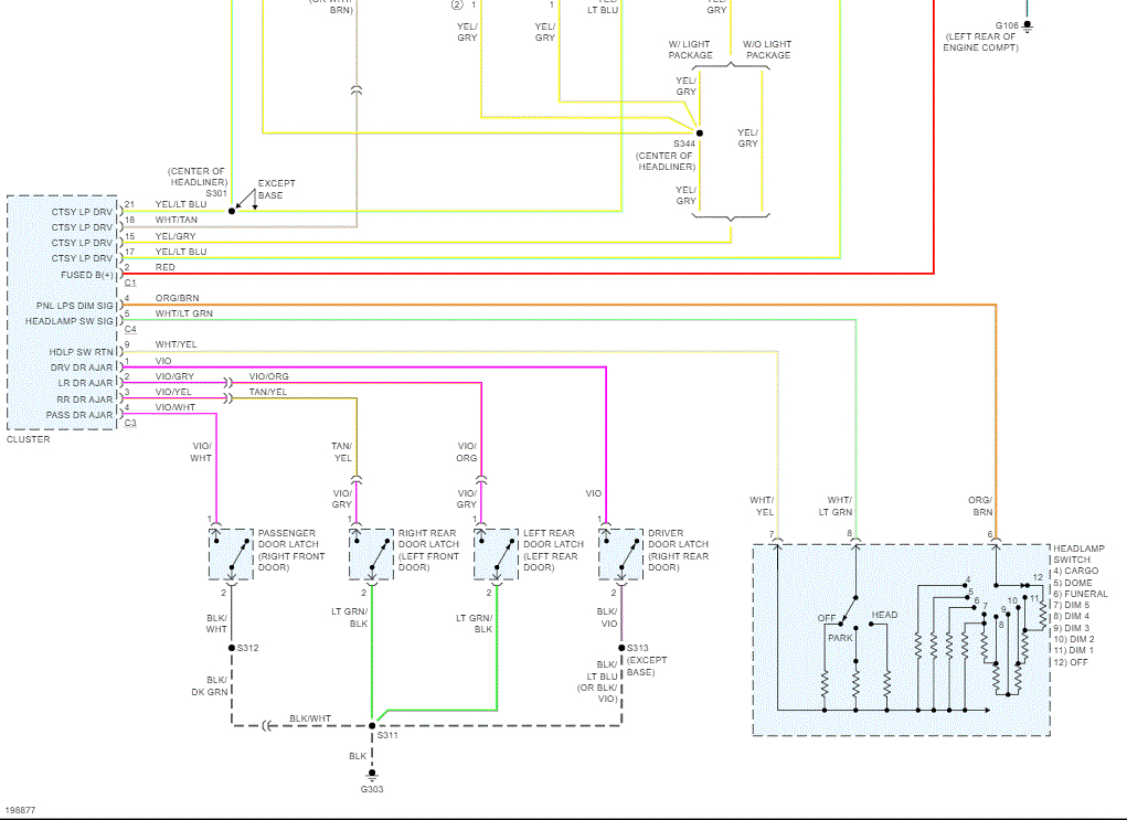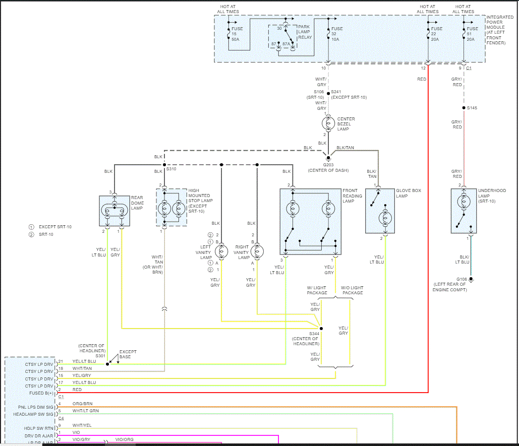 I attached a the entire schematic in two pics of the interior lighting. Take a look and let me I overlapped the pics so you can easily follow them.