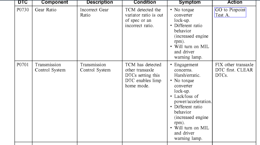 When the weather is below twenty degrees the "wrench" light will come on. Symptoms include no rpm increase even if the throttle is pressed to the floor and the no transmission engagement or it will move ahead very slowly. After it is warmed up I can shut off the key, wait ten seconds and most times it will behave normally. Two codes were flagged P0701 and P0730 but they go away after a hot soak. I have seen other posts with this but not a definitive answer.