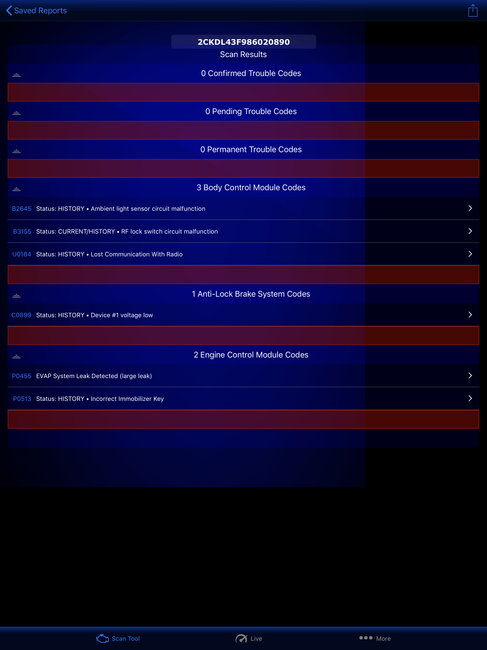 I am getting about 15.5vdc on my Fluke at the battery. I am also attaching snapshots of the report and the live computer feed.