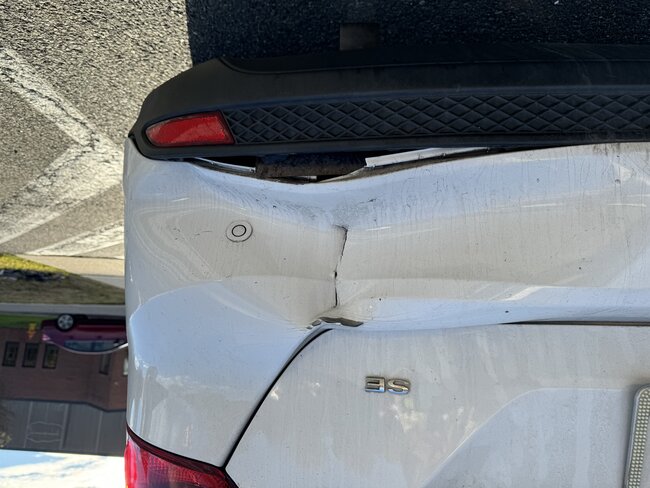 That is the plastic cover that is damaged. There are a couple of options. One is to take a hot day, then use a heat gun and slowly heat up the areas that are deformed and move the pieces back into place. Then you drill holes on either side of the crack and use small zip ties to "stitch" it together. Or you can remove the rear taillights (remove the access cover, remove the two screws and pull it out of the clips, then disconnect the connectors and set them inside the car. Then remove the screws from the bumper cover as shown and with a helper you then pop the clips free around the cover and remove it. Disconnect the parking sensors and set it aside. Now you reverse that process to install the replacement. Takes roughly an hour if you are not practiced with it. I would suggest finding a you pull it type yard and going there to get the replacement. That way you can "practice" on one before you take yours apart. Or you can use www. Car-part. Com and enter in the vehicle info (2013 Ford Focus, Bumper assy, hatchback with park assist) and see how many yards in your area have one on hand. I looked quick and found 2 of them in silver within 50 miles of me so you should find a few. Have them pull it and you go pick it up. Then do the same removal and install on your car. The average price in the northeast was around $200.00. At a you-pull-it they are about $75.00. Hope that helps. Oh, one thing they don't say. Take some painters tape and go around the edge of the bumper cover near the lights and on the body, that way when you are removing or installing, you minimize the possibility of scratching the paint with the clips if you slip.