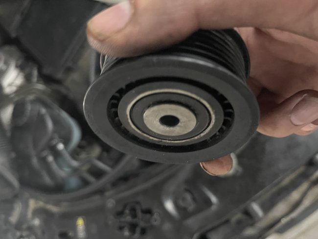I'm trying to replace a pulley, which has grooves and to the left of the water pump, every time I order one it's wrong. It screws in but it is tight and won't turn. Found online that it is called sheave pulley ordered it from dealer and it's also not fitting, tight. What is the purpose of the wheel on the back of the pulley that screws into the bolt? None of those online match the bolt that screws in.