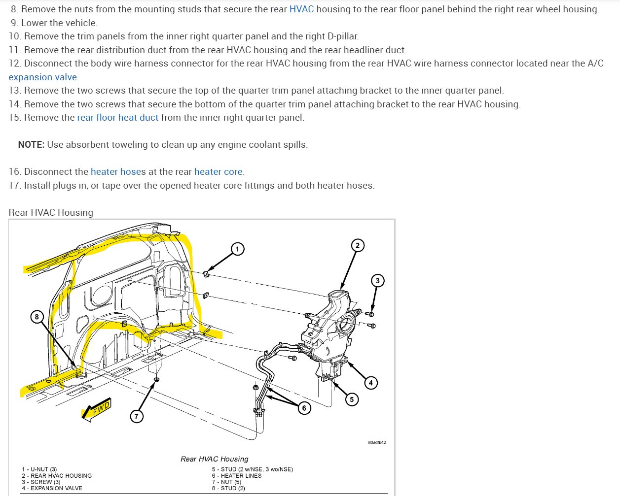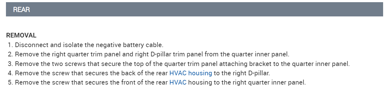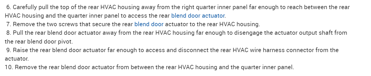 Okay, service information seems to be incorrect in some places here. It does look like you can access the Rear Door Actuators without having to remove the entire HVAC unit. I'm not sure why they have it listed differently like that, but it's good news.