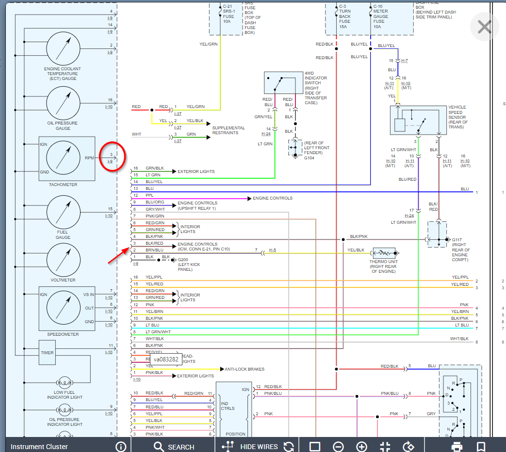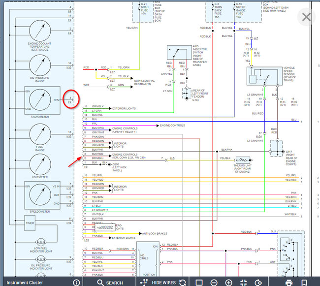 So, the way to check this is to go to the cluster and find out what the voltage is coming in on the wire highlighted.