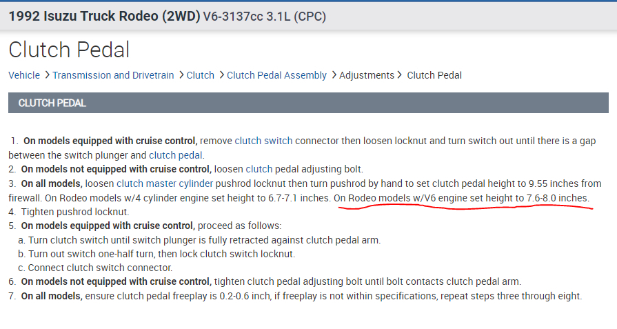 I have 1992 Rodeo 3.1 v6 rwd with Borg Warner, my other 92 Rodeo 3.1 4x4 with mua never gave me clutch pedal issues like the borg warner. My clutch is good but since last fall playing in mud my clutch pedal has been giving me issues. I've replaced pedal assembly and now hydraulic hose. Pedal still somewhat on floor, I've bled several times, there doesn't seem to be anymore leakage. So I'm hoping I just need to adjust pedal, or the hose brackets were put on reverse of how it was. Could that make a difference? Or is pumping bleeder too much causing more air bubbles?
