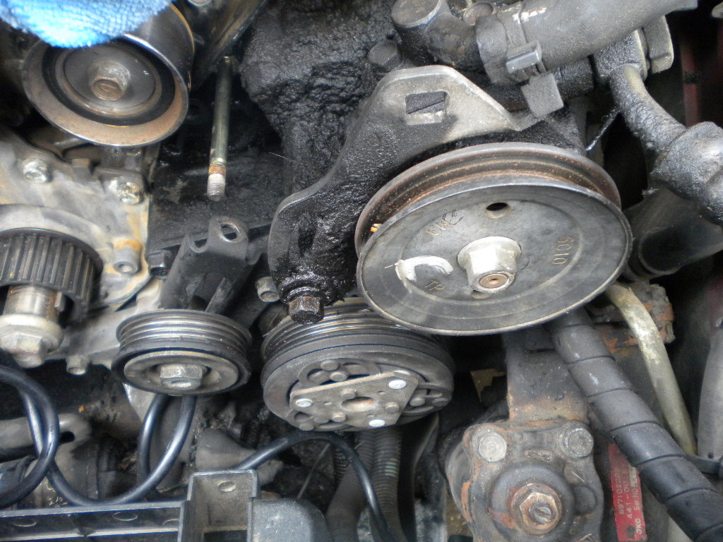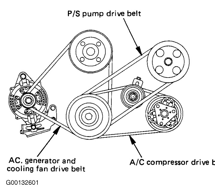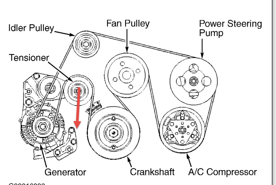 Take a look at the picture I attached. If that is the one you have, it has an automatic tensioner (one belt). Is that correct? If it is, you simply turn the adjuster with a wrench in the opposite directions of the belt and it will release tension.
