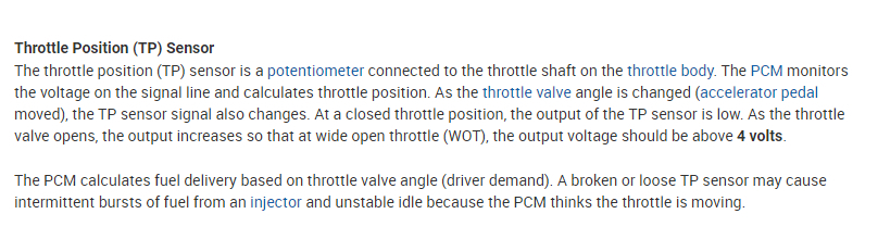The throttle position sensor you have a output voltage of more than 4 volts.