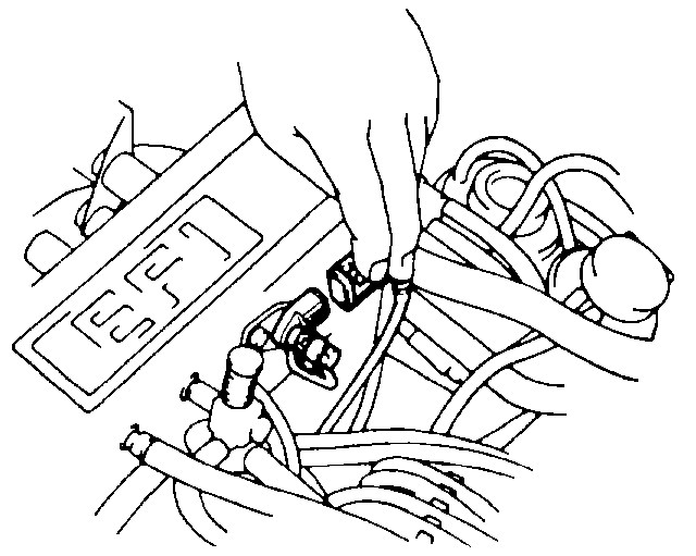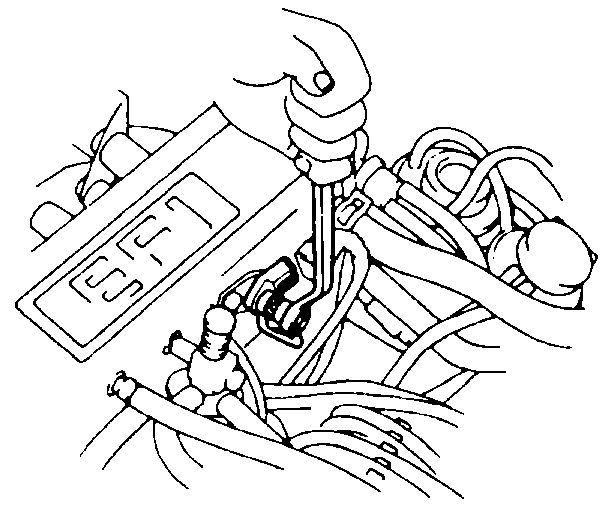 11. After checking fuel pressure. disconnect the battery ground strap and carefully remove the fuel pressure gauge to prevent gasoline from splashing.