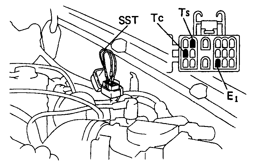 1. Using jumper, connect terminals FP and +B of the DLC1. (SST 09843-18020)