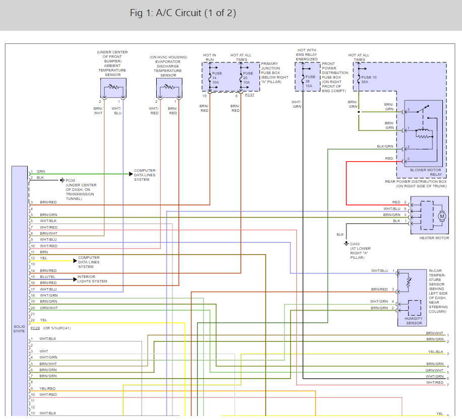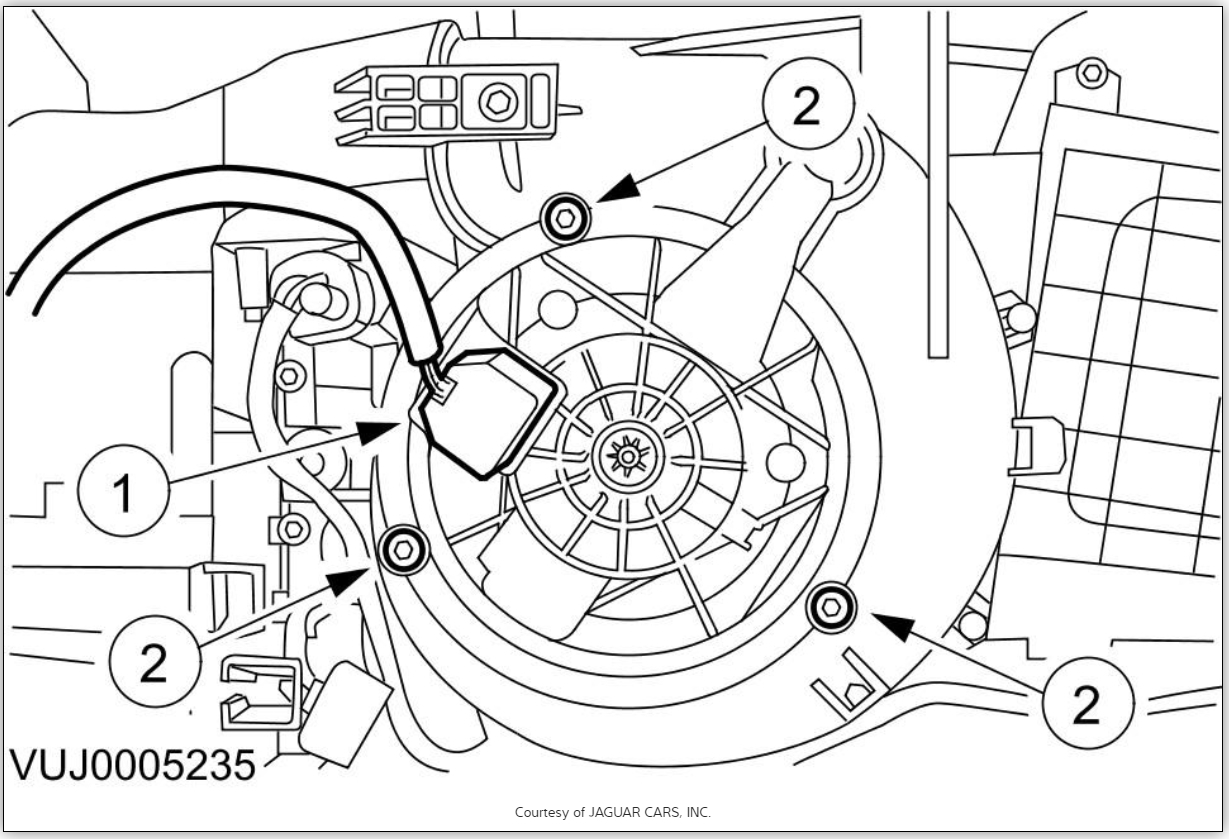 My 05 Jaguar ac/heater blower stop working, I already check all the fuses, and they seem fine, all the function on the climate control works too, just have no air blowing out, I like to know what wire I need to check on the control plug to see if there is any output going to the blower?