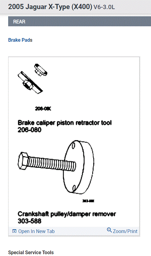 NOTE:Special tools required: Brake Caliper Piston Retractor Tool (206-080) and Crankshaft Pulley/Damper Remover (303-588). See Fig. 68 and Fig. 69 .