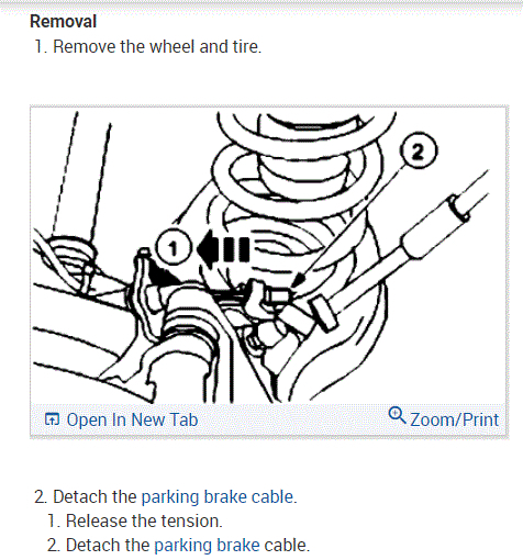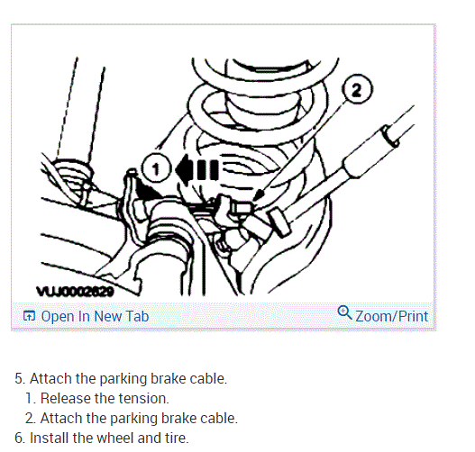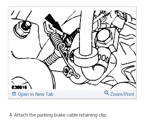 Release the tension on the parking brake cable by moving the parking brake caliper lever away from the cable end. Install cable to parking brake cable lever.