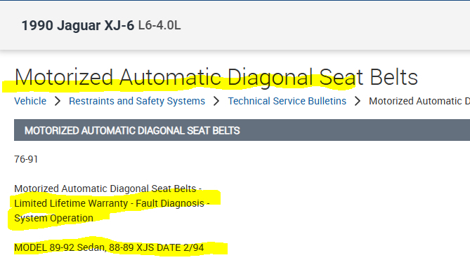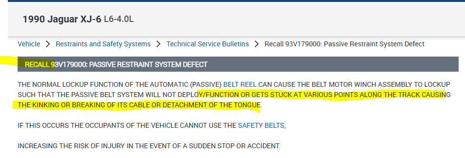 The passive restraint belt (passenger) will not retract when the door is opened or the vehicle turned off. The belt will continously sound as if it is engaging then disengaging, but will not move from it's fixed position (engaged).