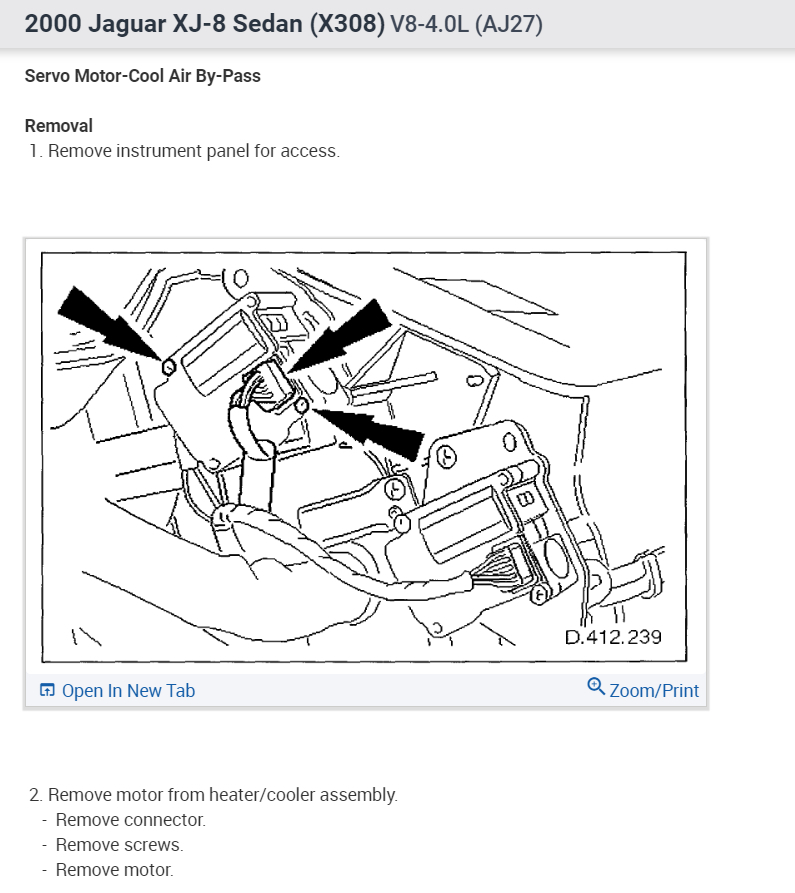 I keep thinking back to the sound when I get a failure, which is like the center servo motor running but the A/CCM not reading the flap potentiometer correctly and it keeps driving the servo and the gears just click over at their end stop. But if that was the case I assume that I would see a 'Center Vent Feedback Potentiometer' failure code. I am assuming that Jag designed the system so that the flaps would not hit the end stops and then keep clicking!