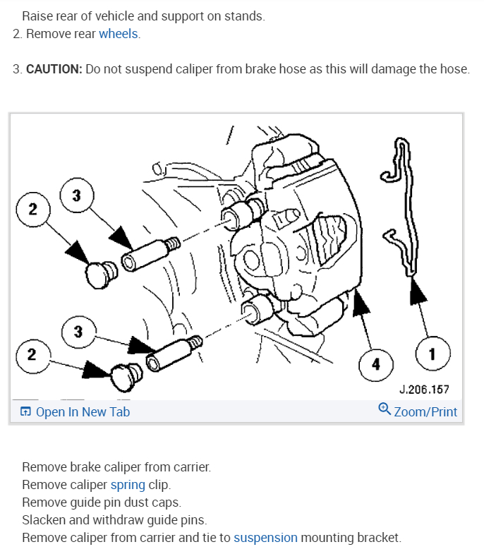 CAUTION:Do not suspend the caliper from the brake hose as this will damage the hose.