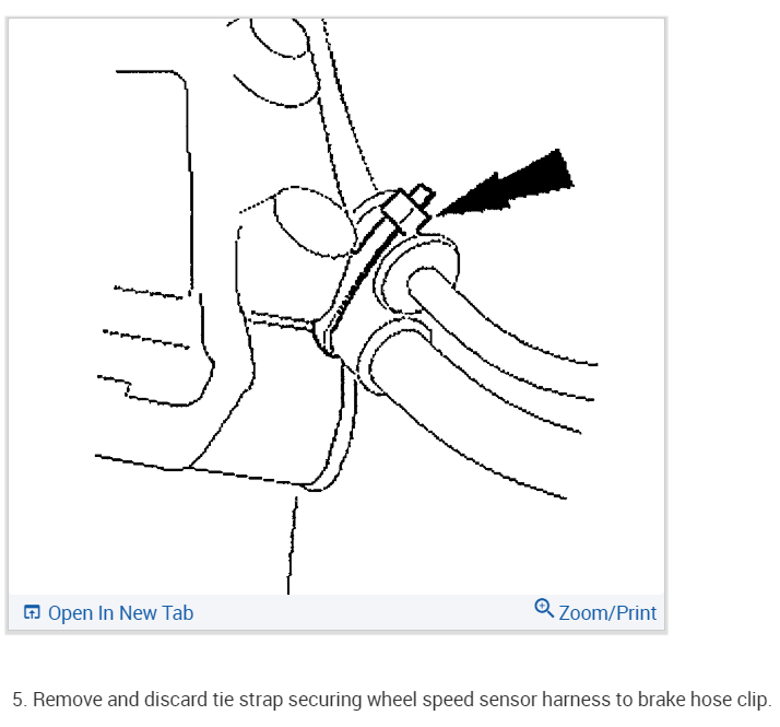 Remove and discard the tie strap securing the wheel speed sensor harness to the brake hose clip.