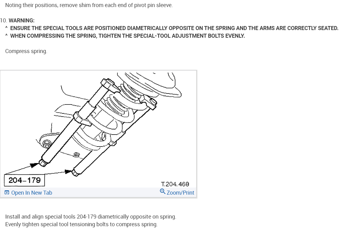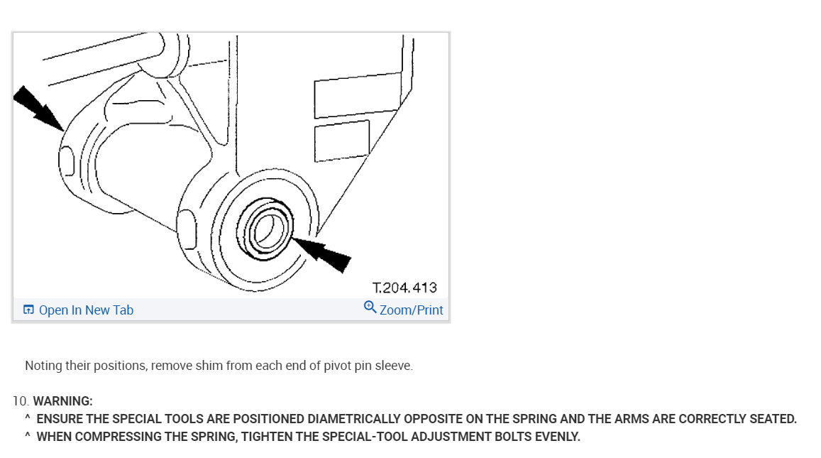 WARNING:ENSURE THE SPECIAL TOOLS ARE POSITIONED DIAMETRICALLY OPPOSITE ON THE SPRING AND THE ARMS ARE CORRECTLY SEATED.
