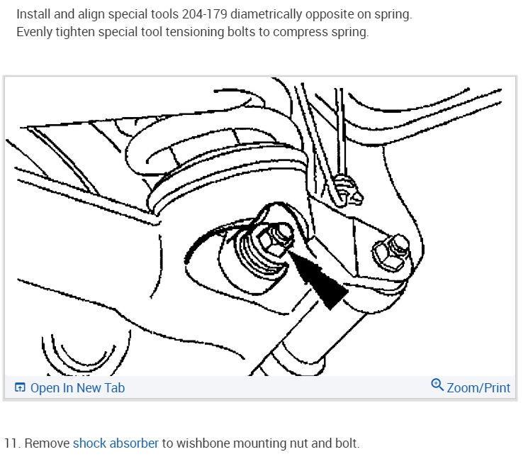 Remove the shock absorber to wishbone mounting nut and bolt.