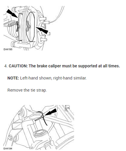 Remove handbrake caliper. Refer to Brakes and Traction Control/Brakes/Parking Brake System/Parking Brake/Service and Repair.
