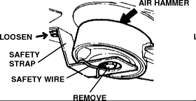 Loosen upper safety strap bolt.