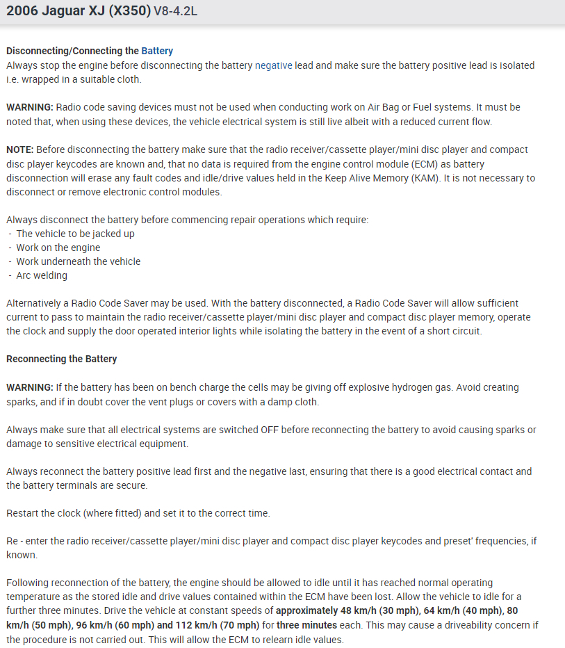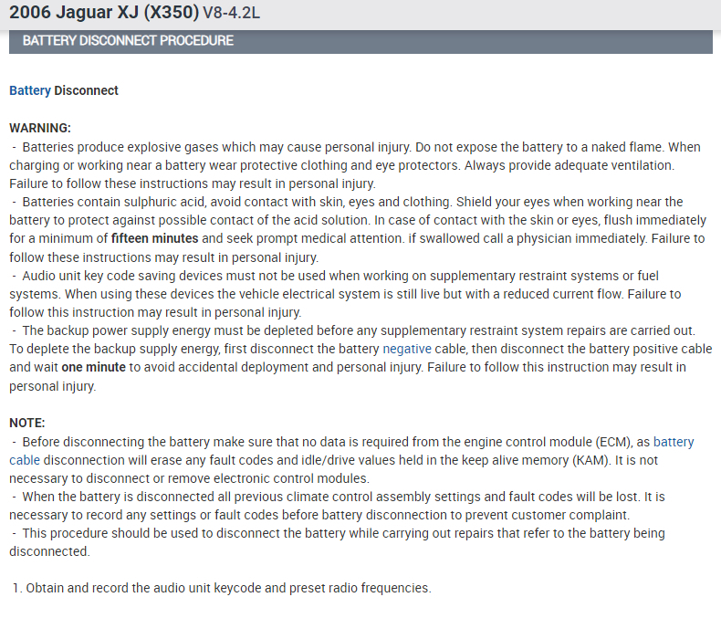 It is recommended to use a secondary 12V source when replacing the battery to power the vehicle, otherwise the radio will lock up and you will need the radio codes to unlock it.