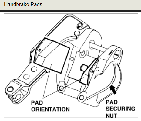 These parking brake pads are located on the inboard member of the differential. You must raise the car up so you can get underneath.