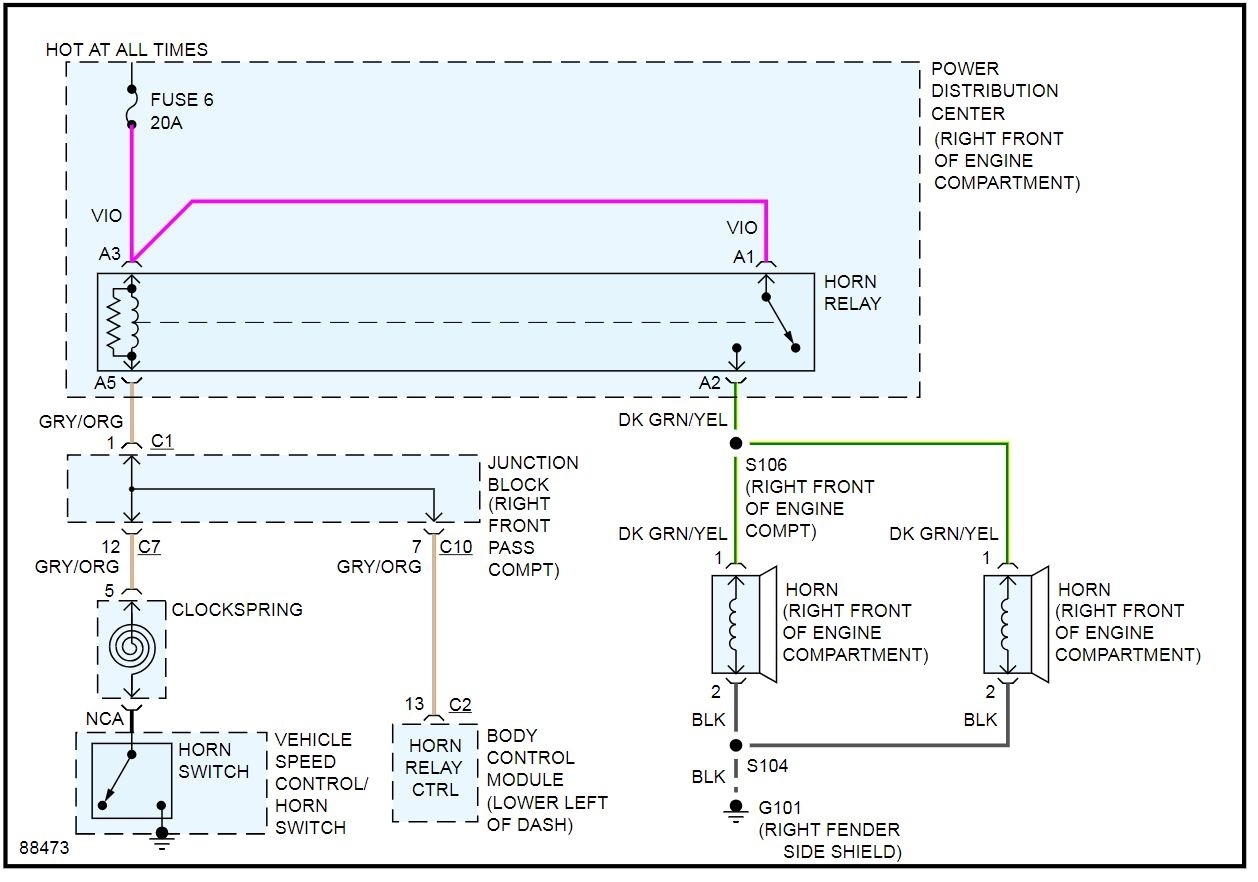 The clicking behind the glove compartment area you are hearing would be that of the horn relay. Relays click when they open and close, if it's clicking when you are not wanting it to (when you're engaging horn button) then it means the relay is bad and needs replaced.