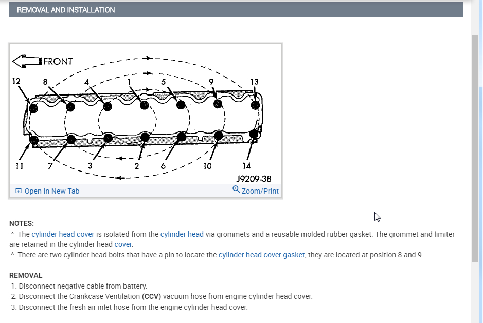CLOSED CRANKCASE VENTILATION SYSTEM 2.5L & 4.0L 1. Closed Crankcase Ventilation (CCV) system is used on both 2.5L and 4.0L engines. CCV system performs same function as a conventional PCV system, but does not use a vacuum controlled PCV valve. CCV system uses a fixed orifice fitting. Ensure locations of fixed orifice fitting and air inlet fitting have not been exchanged. 2. Fixed orifice fitting may be Gray in color and air inlet fitting may be Black in color. On 2.5L, fixed orifice fitting is located on left front side of valve cover and air inlet fitting is located at rear of valve cover. See Fig. 15 . On 4.0L, fixed orifice fitting is located at rear of valve cover and air inlet fitting is located at front of valve cover. See Fig. 16 . 3. On all models, remove fixed orifice fitting from valve cover and leave tube attached. Start engine and let idle. A hissing noise should be heard from fixed orifice fitting. Also, a strong vacuum should be felt with a finger placed at fitting inlet. If vacuum is not present, remove fitting. If vacuum is now present at tube, replace fitting. Do not attempt to clean fitting. If vacuum is not present at tube, go to next step. 4. Check tube for kinks or obstruction. Clean tube fitting at intake manifold, if necessary. A 1/4" drill may be used (by hand) to dislodge any solid particles. Reinstall fixed orifice fitting and tube. Disconnect air inlet fitting and hose from front of valve cover. 5. Hold a piece of stiff paper loosely over opening in valve cover. Allow engine to idle for one minute. Paper should be drawn against rubber grommet in valve cover by vacuum in crankcase. If vacuum is not present, check tubes for restrictions or obstructions. Fig. 15: Locating Closed Crankcase Ventilation Components (2.5L) Courtesy of DAIMLERCHRYSLER CORPORATION Fig. 16: Locating Closed Crankcase Ventilation Components (4.0L) Courtesy of DAIMLERCHRYSLER CORPORATION Page 1 of 1 SYSTEM & COMPONENT TESTING -2000 Jeep Cherokee Classic 3/15/2009