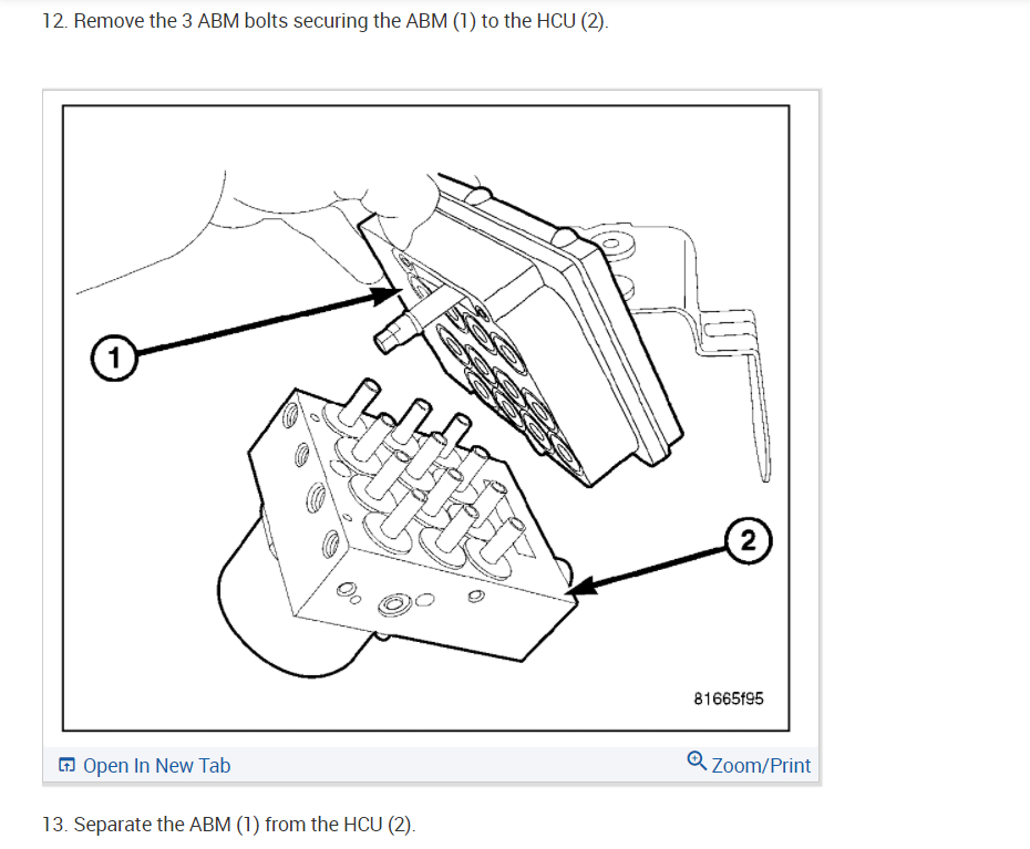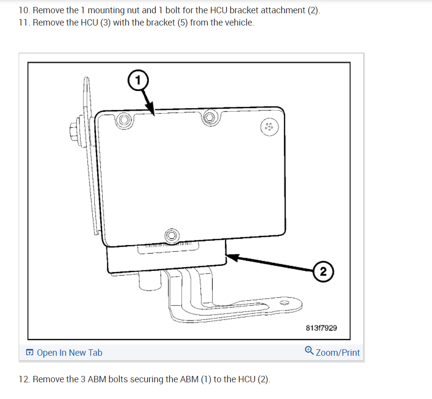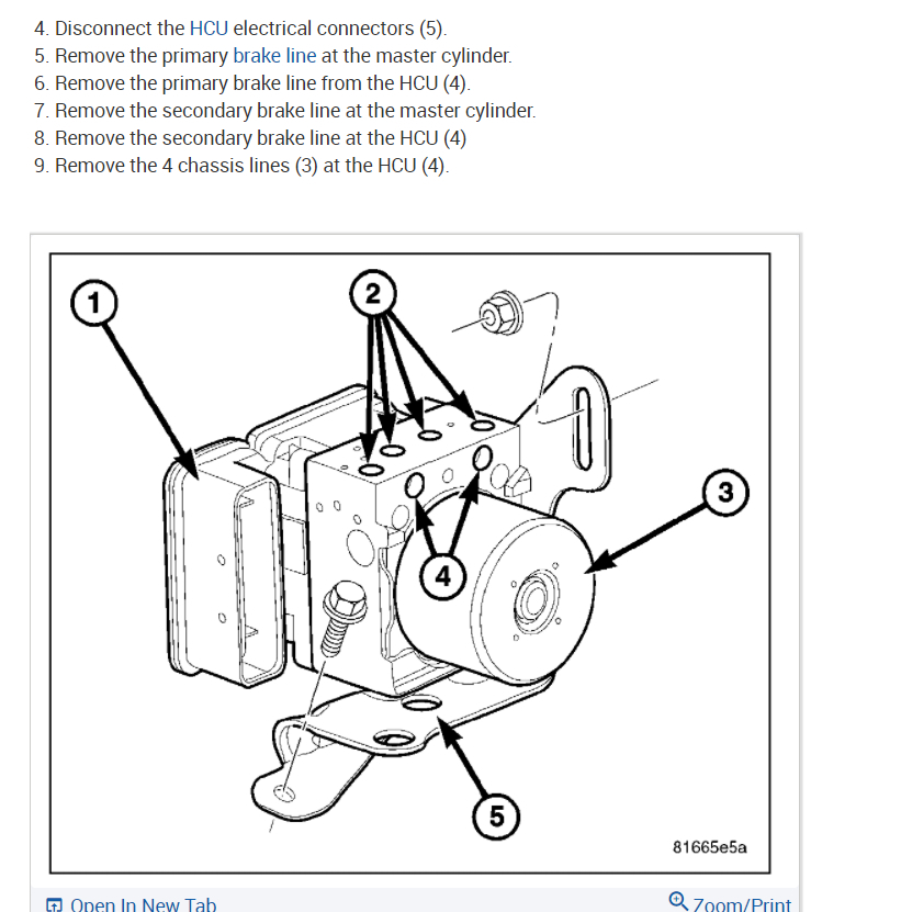 Remove negative battery cable from battery. Pull up on CAB harness connector release. See Fig. 5 and remove connector. Remove brake lines from HCU. Remove HCU/CAB mounting nuts and bolt. Remove HCU/CAB.