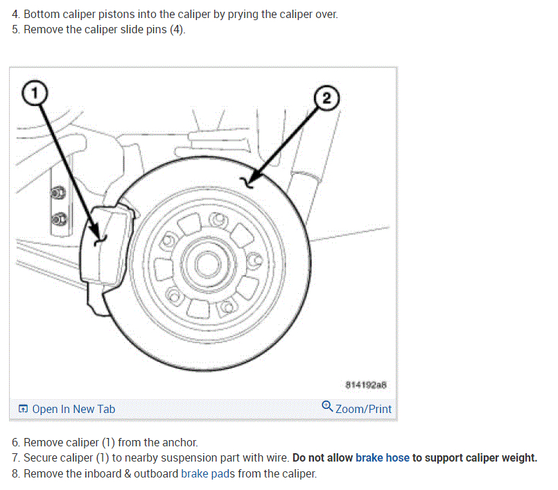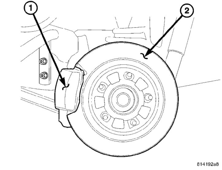 5. Secure caliper assembly (1) to nearby suspension part with wire. Do not allow brake hose to support caliper weight.