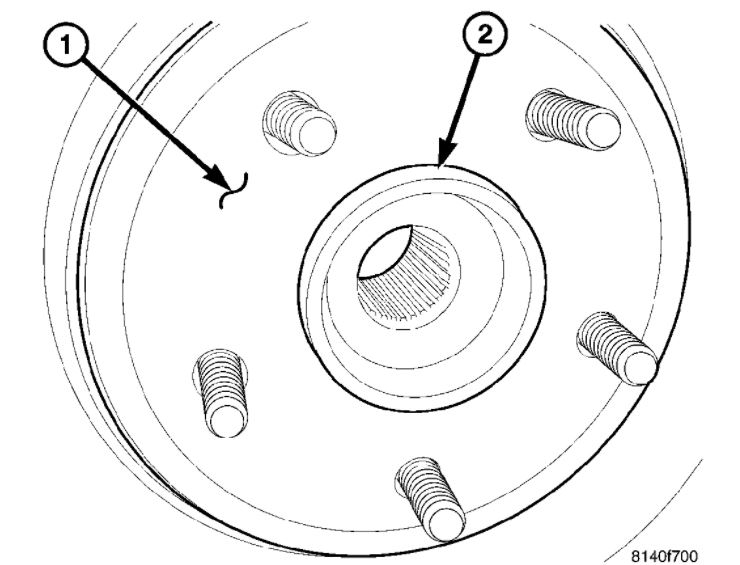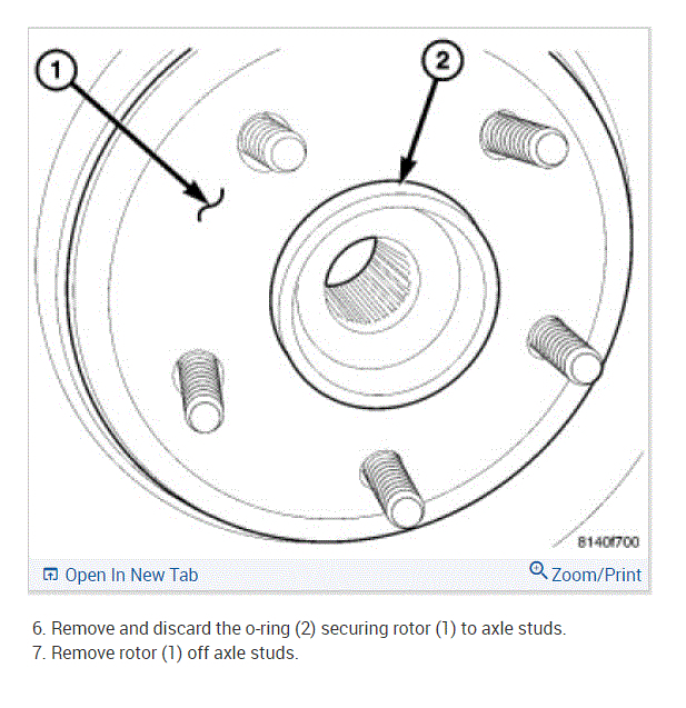 6. Remove and discard the O-ring (2) securing rotor (1) to axle studs.