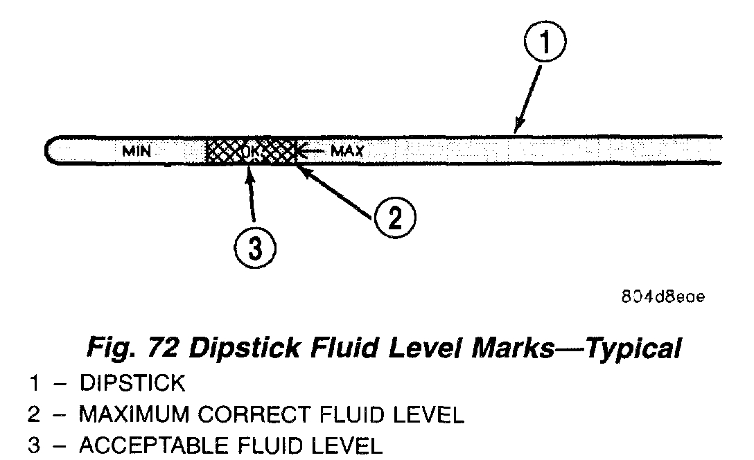 7. Remove dipstick (Fig. 72) and check fluid level as follows: