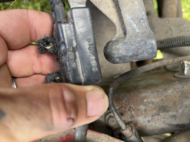 The existing wiring harness looks like it’s been chewed up and the two terminals are missing. Can anyone help me with an OEM part number or solution for wiring this new alternator?