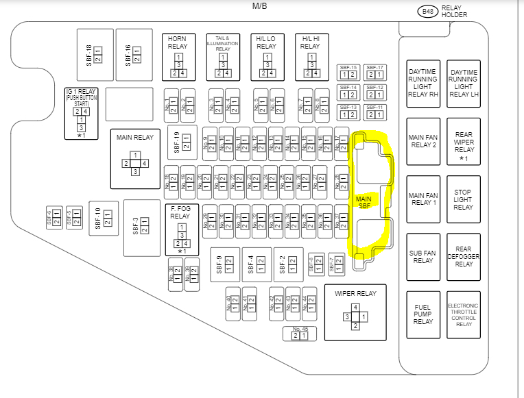 Next, there is a main fuse in the engine compartment fuse box. It's a 125-amp SBF fuse. If you look at pic 1 below, note that power from the battery goes there first and is distributed. Check that fuse (see pic 2). When checking, make sure the fuse is good and there is power to and from it.