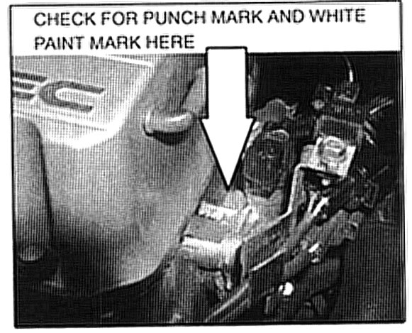 1.  Inspect the rear of the cylinder head for a punch mark with white paint.