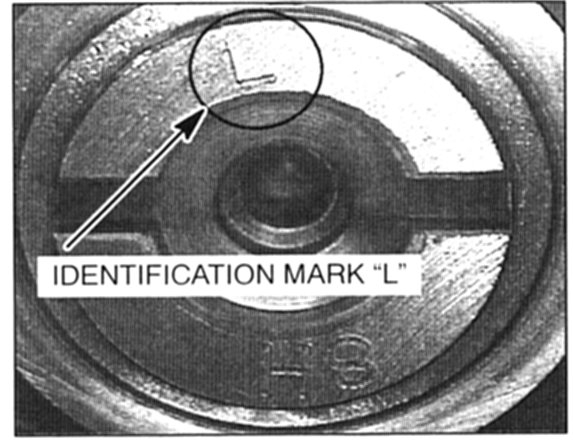 2.  Replace the camshaft, using the part listed in the PARTS INFORMATION section of this bulletin. The new camshaft has an "L" identification mark.
