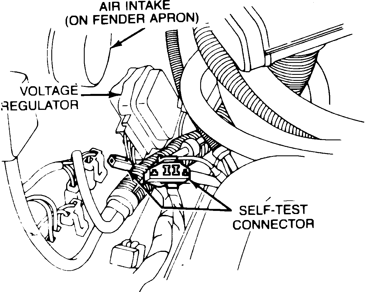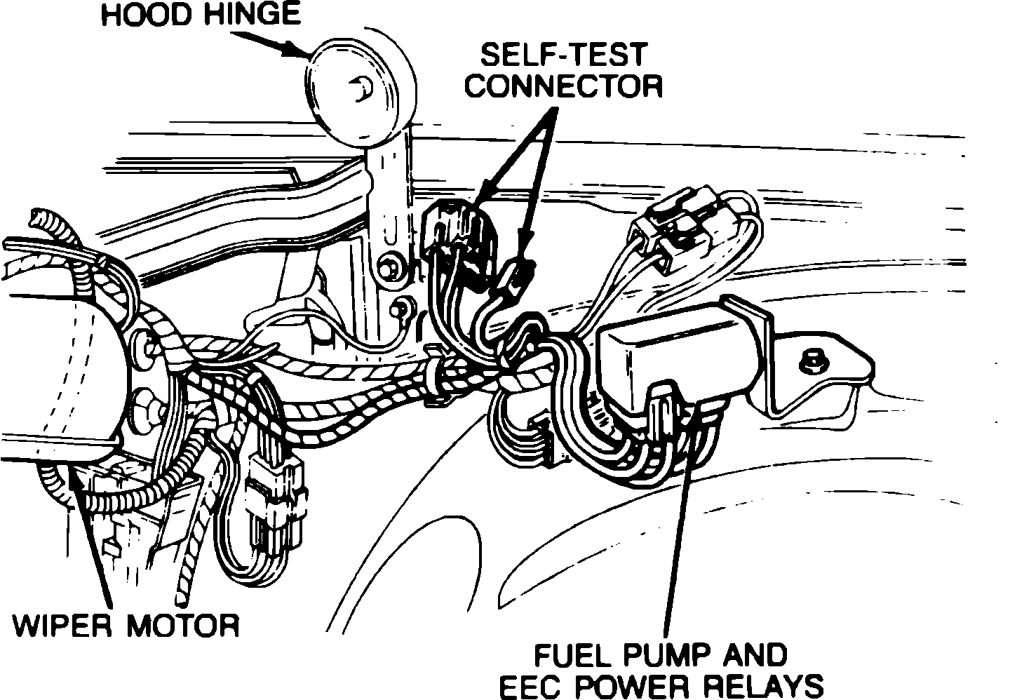 Fig. 19 Self-test connector location. Except Crown Victoria, Grand Marquis, Lincoln Town Car, Continental & Mark VII