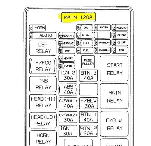 If nothing at all works and you are sure the battery is charged, I need you to check the main fuse in the power distribution box under the hood. I attached a picture and highlighted the fuse I'm questioning. It is a 120 amp fuse.