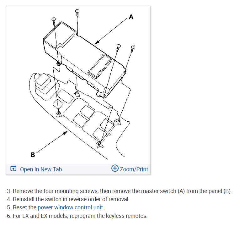 These cars have many different types of master window switch, did you get the same part number? If so, the switch is defective and needs to be swapped out. It masters if it is a 2 or 4 door and trim levels as well, here are the four different parts numbers.