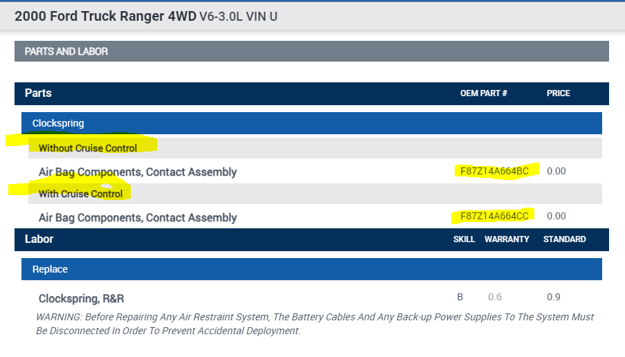 Pic 1 shows the OEM part numbers, and pic 2 shows an example with cruise control. Simply google search Ford part number xxx.