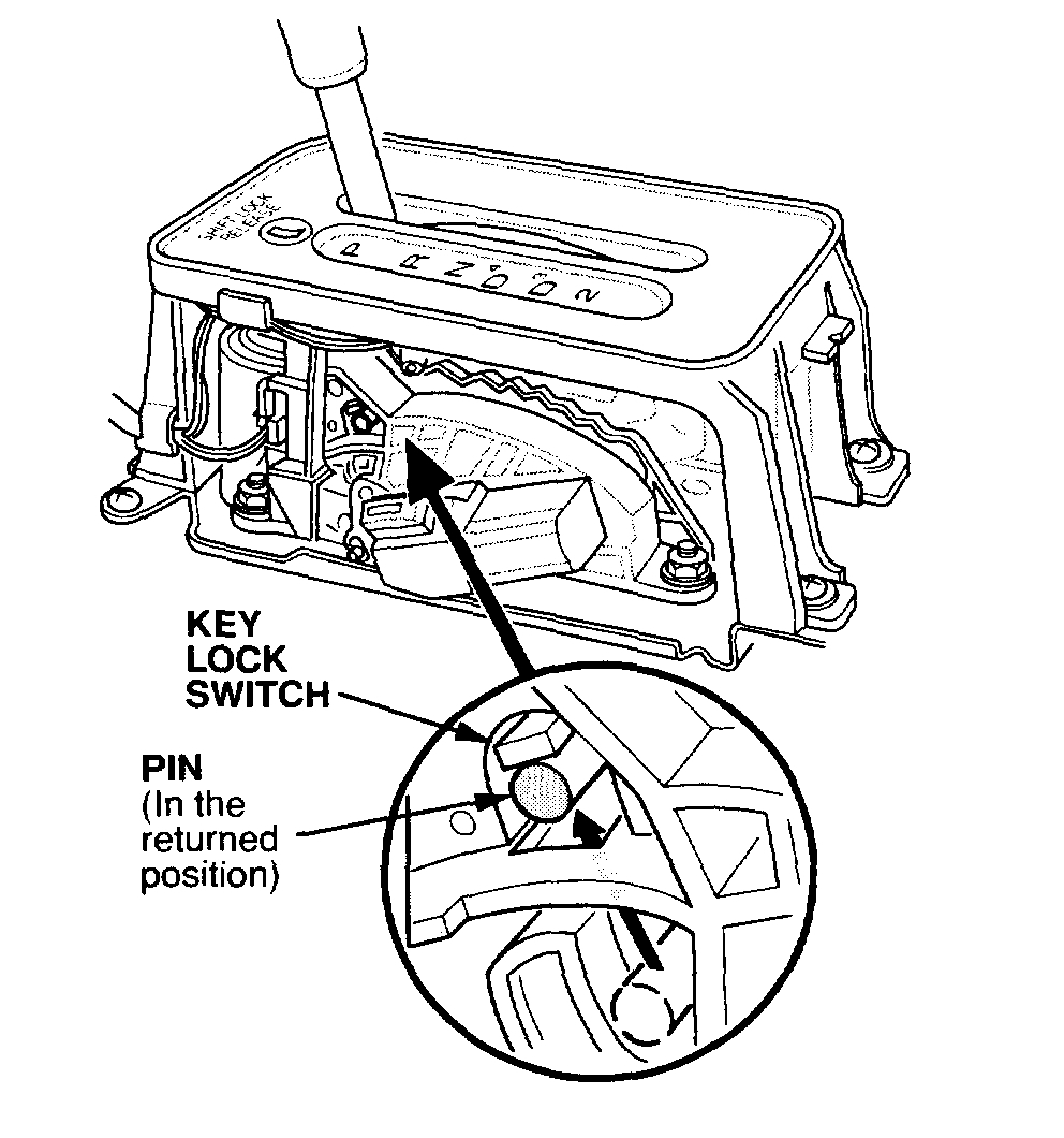 3. Inspect the key lock switch. If the pin is not in the switch, jiggle the shift lever back and forth without taking it out of Park.