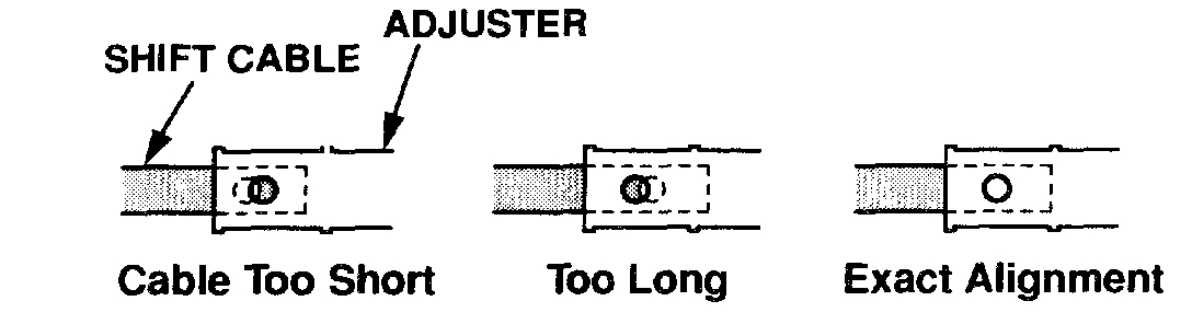 3. Check the alignment of the hole in the adjuster with the hole in the shift cable. The holes should exactly align.